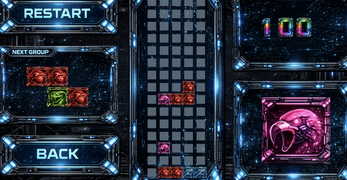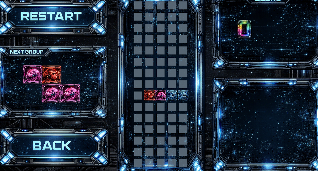this is a game mix by Tetris. Use A and D move Left and Right. Use W to rotate, and S to move down quickly. When the grids move to the bottom, can use mouse to click to change the grid and near one. 3 and more grids that connect in same color will canceled and get point. Chameleon can appear as any animal, but it only changes when swapped.